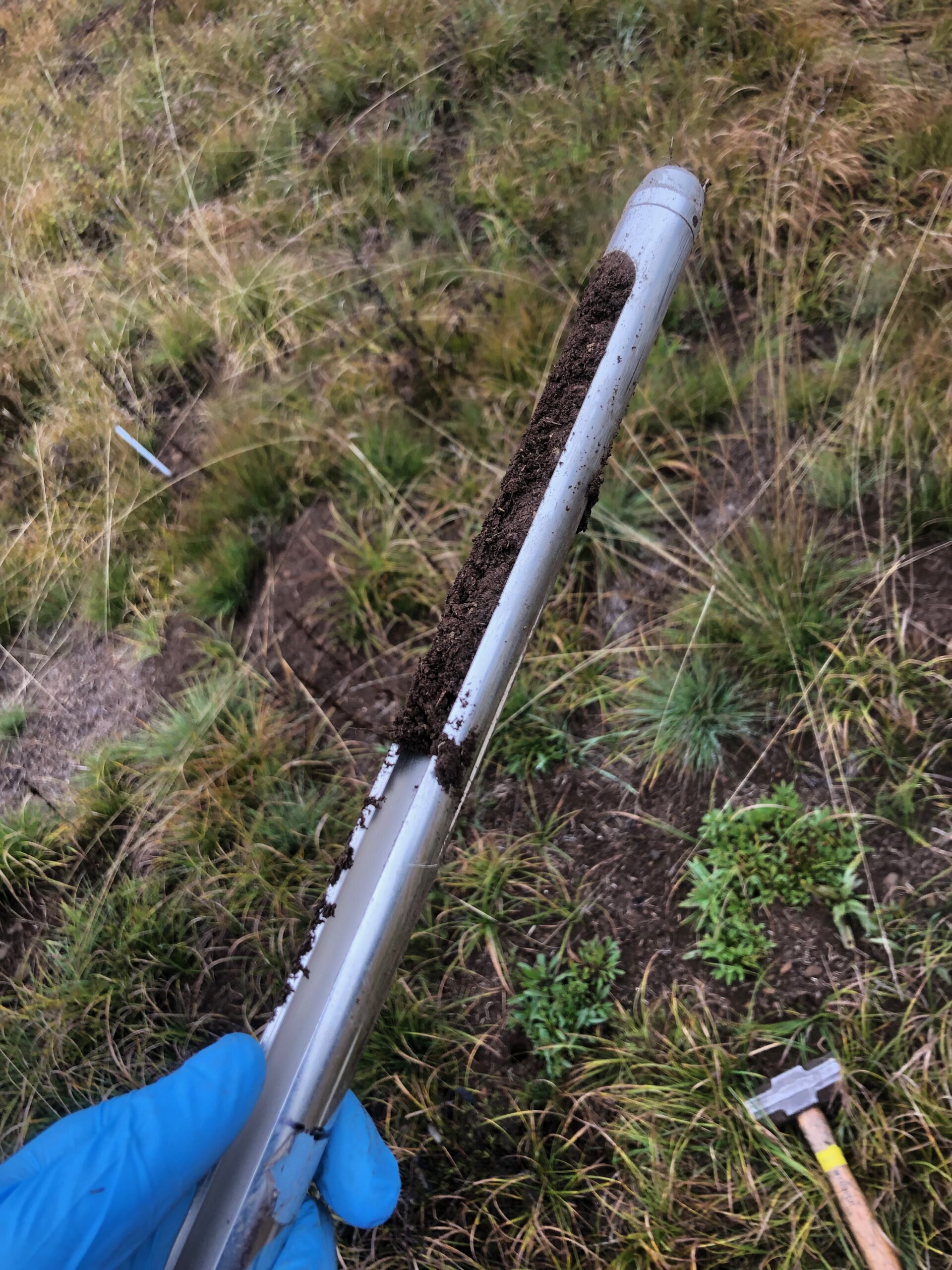 Several soil cores were collected in each plot to sample root biomass. Soil coring allows observation of belowground growth without ripping up plants.