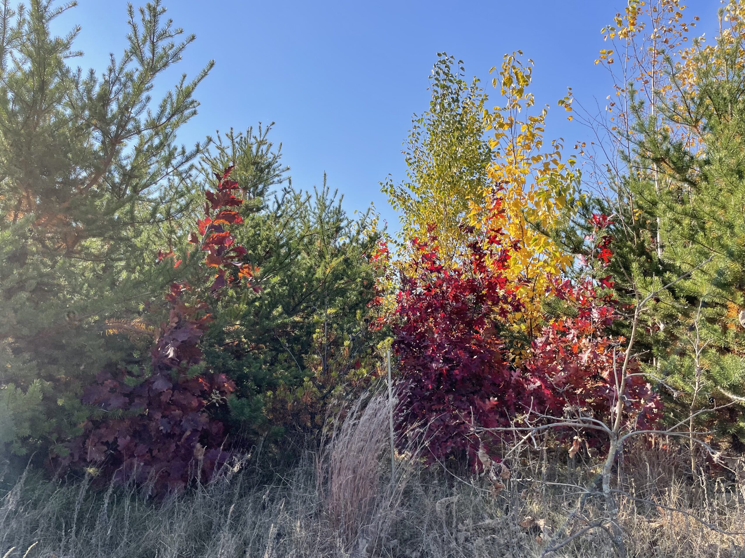 The autumnal color contrast between trees is striking in the Forests and Biodiversity experiment of Cedar Creek LTER. Credit: Maria Park, CC BY-SA 4.0