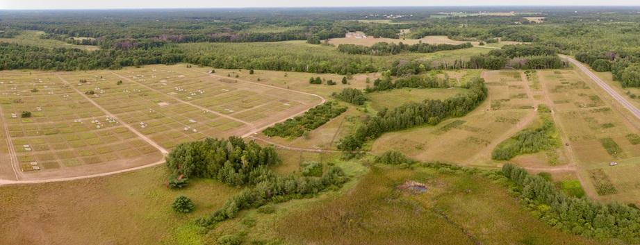 Left =1994 Big Biodiversity herbaceous community plots. Rectangular grid adjacent to lower right corner of Big Bio = 2012 forest biodiversity experiment (FAB l) high density forest plots. Far right gridded section = 2015 forest biodiversity experiment (FAB ll) low density plots. Forest Isbell