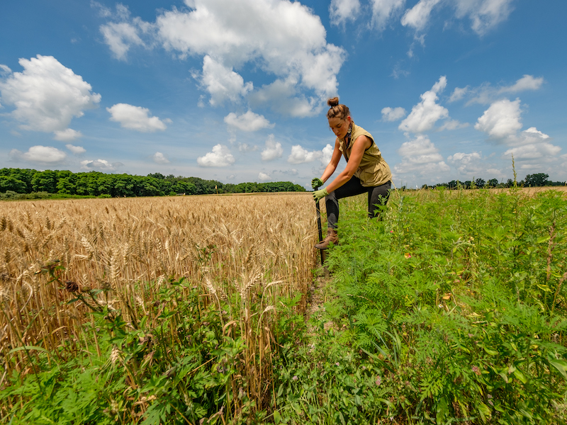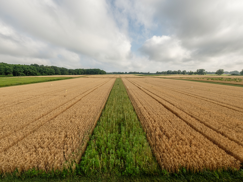 A prairie strip growing in wheat at the KBS LTER Main Cropping Systems Experiment. Kurt Stepnitz