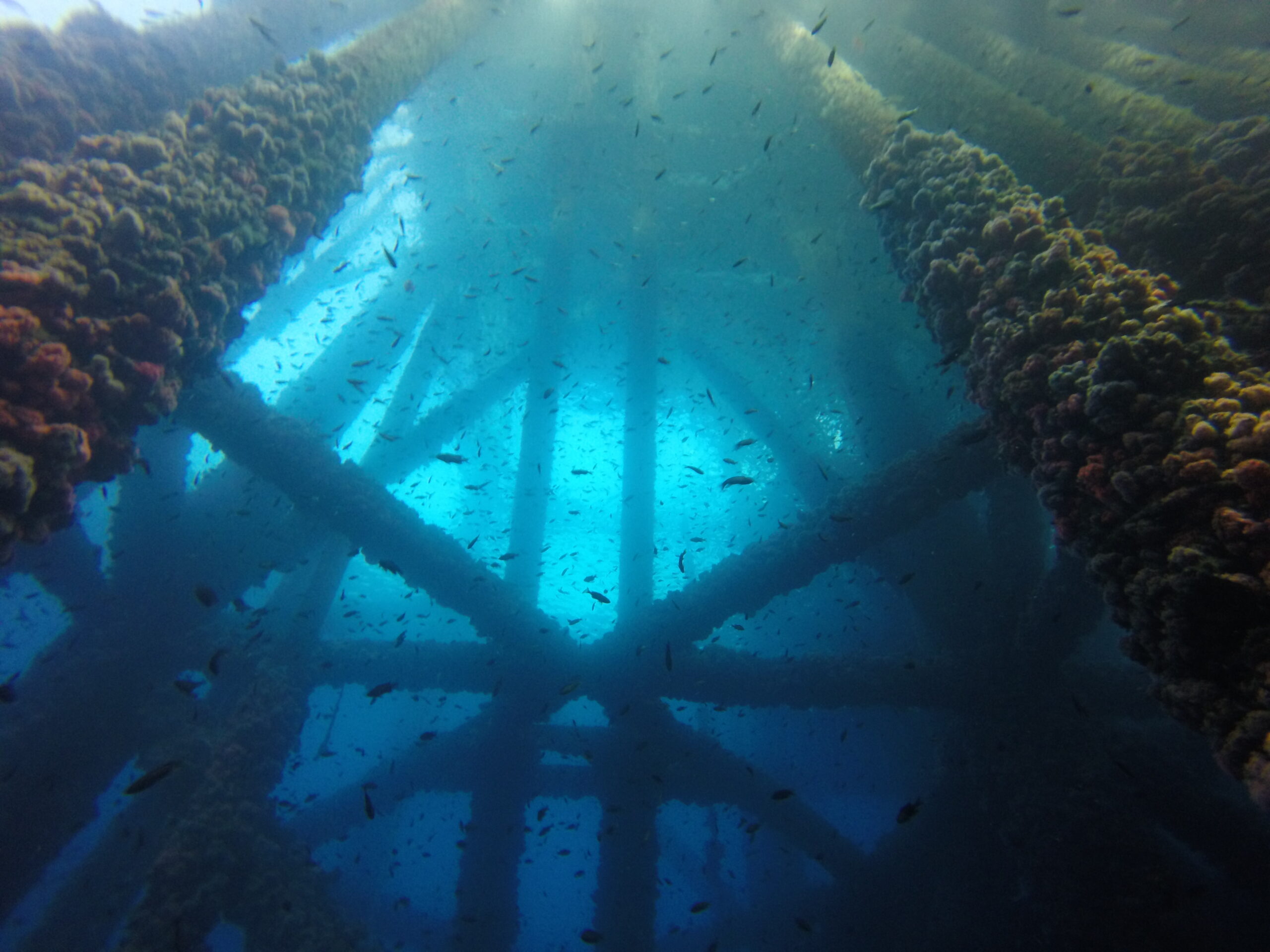 Fish congregate under the structure oil rigs provide.