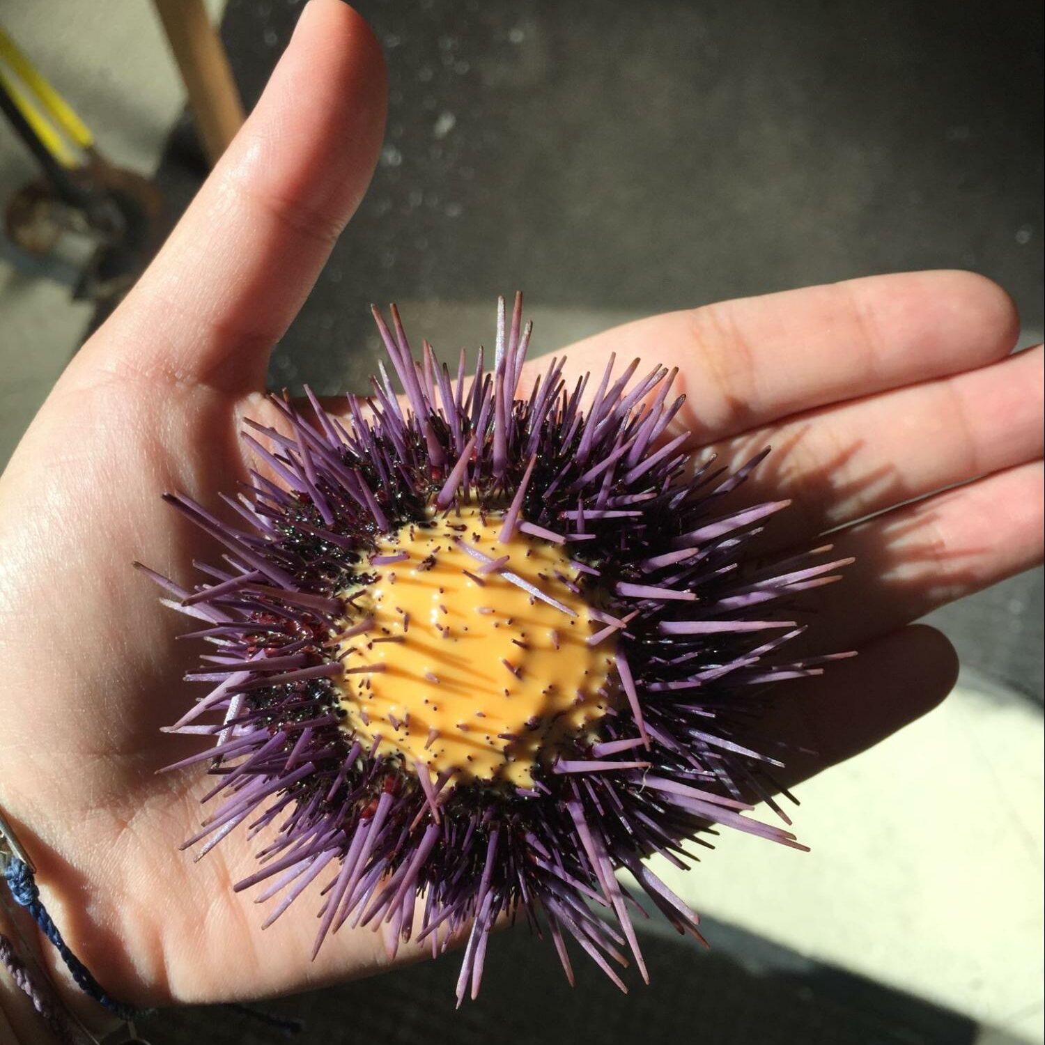 Purple sea urchins, kelp forest herbivores, in the wild.