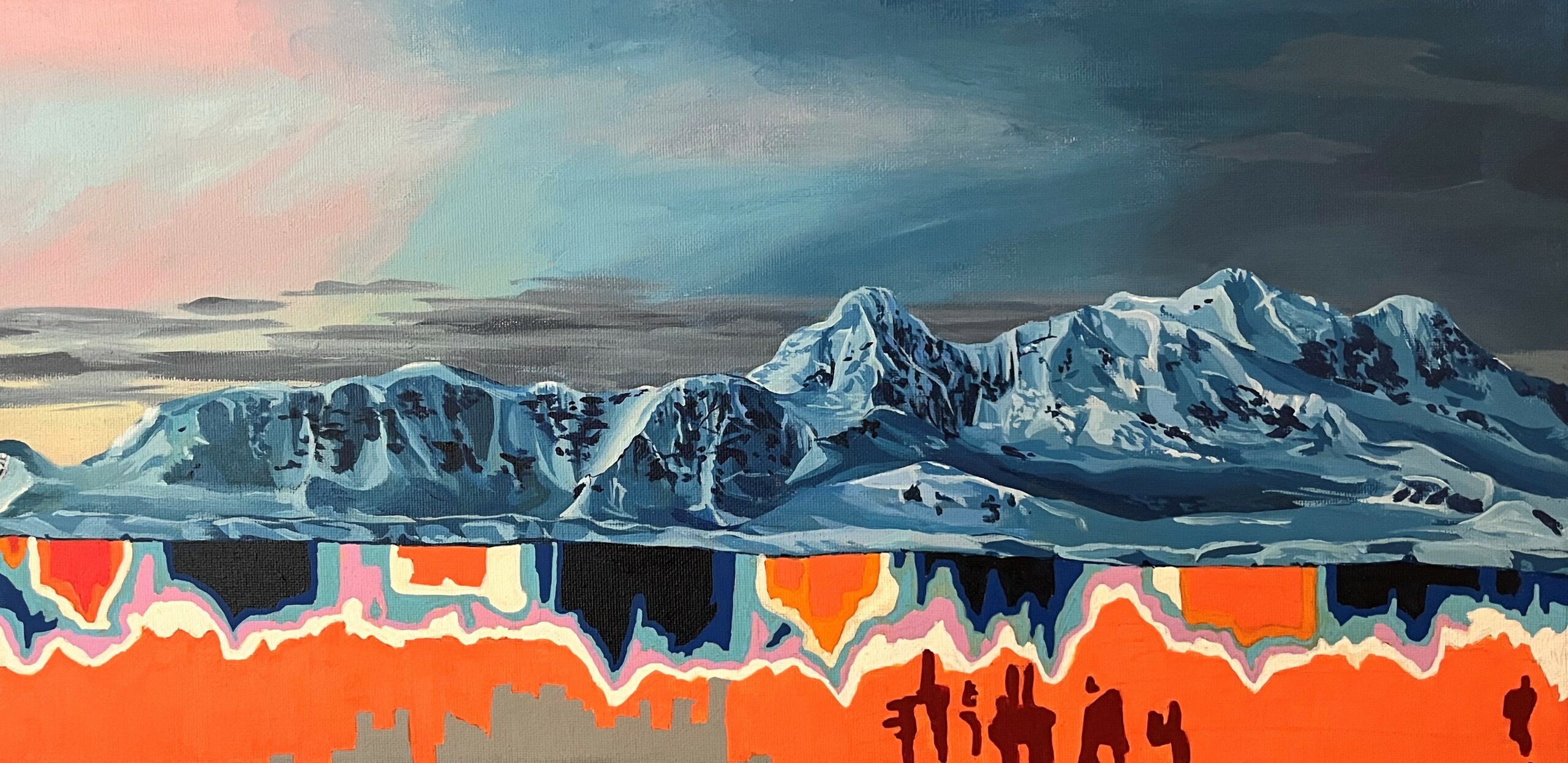 “The beauty of the mountains is a perfect reflection of the beauty of science. The painting is a nod to how the understanding of science is just as important to nature as its ethereal and timeless beauty. My goal was to bring awareness to the perceived stillness of the mountain to the actual reality of the progressing change through its seasonal temperature cycle. The colors of the sky lead you to think about what can happen in the future if science is left unnoticed and unemphasized.” – Abigail