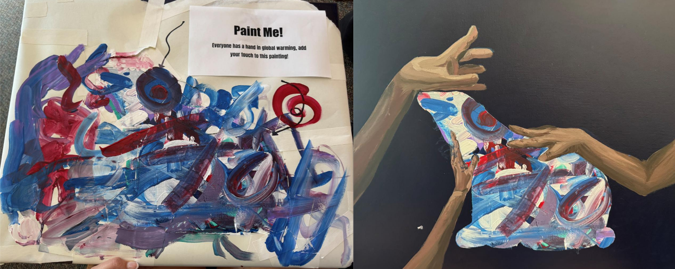 “For this painting I wanted to symbolize choice. I painted hands reaching for the polar bear to symbolize that we all have a hand in the environment and the animal population, it’s how you leave your mark that matters. I painted the polar bear white and taped off the canvas around it, and had an art show where I had everyone add a mark to the painting until it was covered. With a selection of colors and brushes, they painted everything from smiley faces, hearts, and abstracts. All it takes is one person to inspire others, once the first person puts a brush stroke on the canvas, others follow suit. This is just as easily applied to science, it only takes one person to spark the fire that can inspire us all. It’s our choice how we want to interact with the world, and I believe a big part of that is the choice we have to involve ourselves and others.” – Abigail