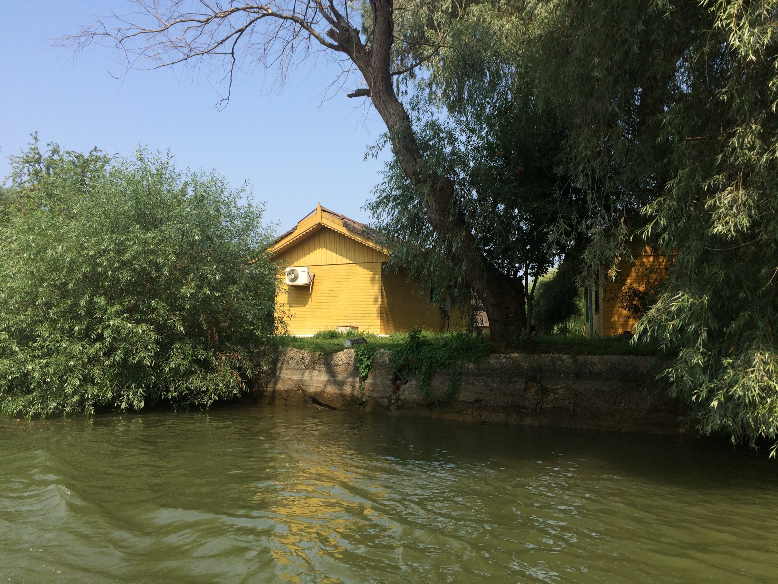 On our first day in Tulcea, we boarded a medium-sized motorboat fit for 8 people, and our boatman, Jeru, drove out into the Danube Delta. We took the river downstream, then several canals, two large lakes, and back home, for a full 8-hour tour, including a 2-hour stop in Criştan, the home village of our boatman, for a traditional lunch of fish stew, called chorba.